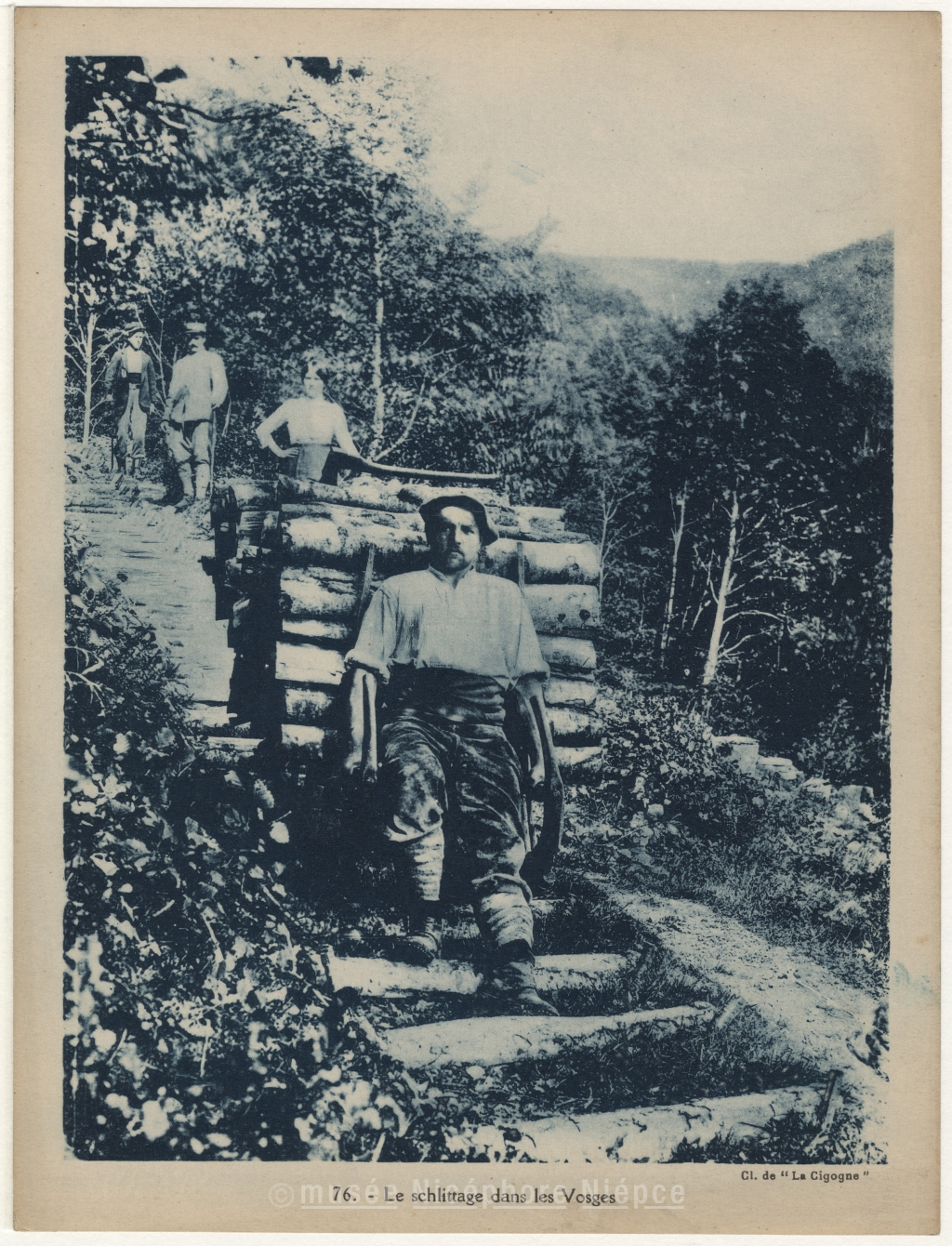 scène - bois - voiture à bras - transport - bûcheron - Vosges - La Cigogne
