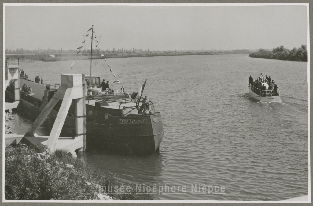 Après l'inauguration du Port, le Ministre et sa suite regagnent Chalon par la Saône