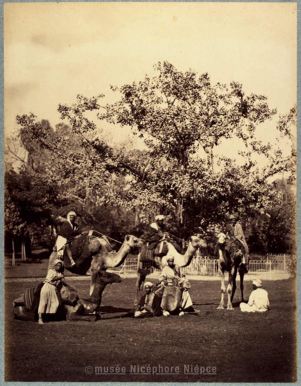 Egyptiens à dos de dromadaires