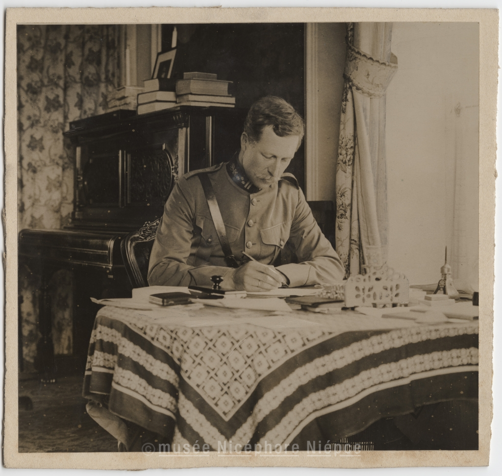27 Novembre 1917 / Le Roi Albert 1er à sa / table de travail