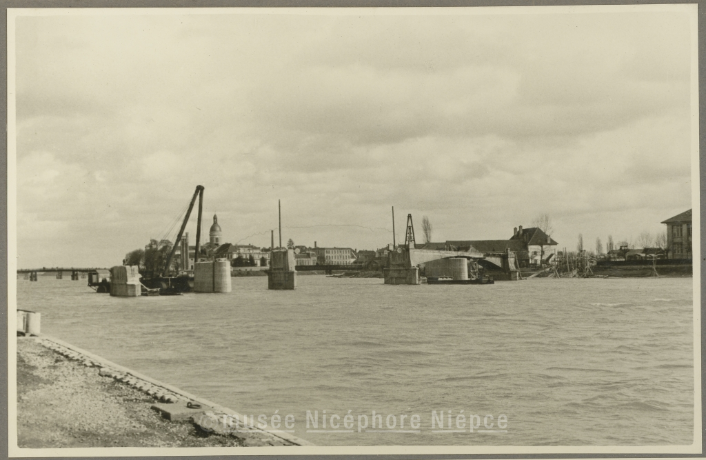 Travaux de démolition du vieux pont Jean richard 21 Février 1951