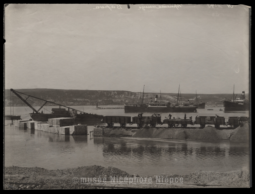 paysage - ouvrier - rail - wagon - port - architecture fluviale et maritime - chargement - navire - Bulgarie - Anonyme - CHUSSEAU-FLAVIENS