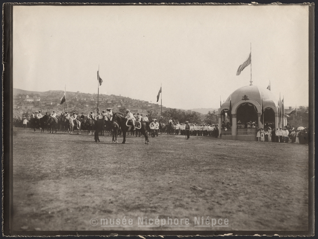 Les fêtes de Tirnovo à l'occasion du 25eme anniversaire de règne de / S.M. le Tzar de Bulgarie. Le tzar passe une grande revue
