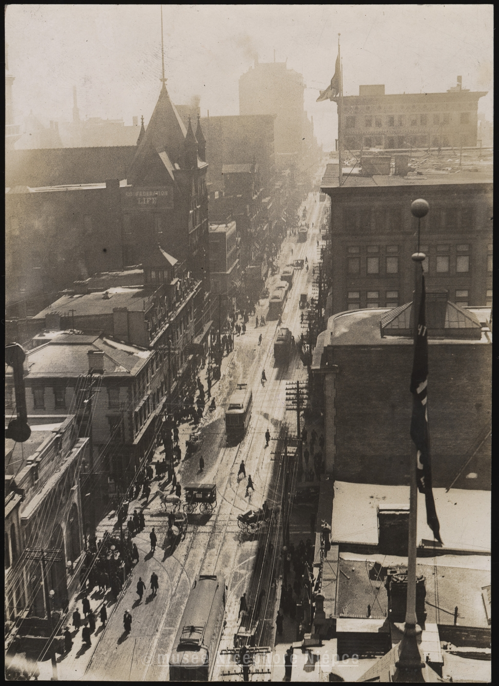 Young St looking from Eaton's roof. / Young street is the busiest in Toronto