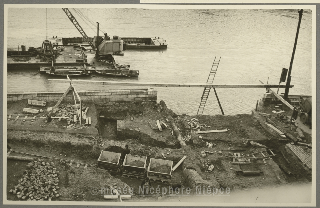 Fouilles pour l'établissement des fondations, rive droite, de la culée du nouveau pont Saint-Laurent 20 Mars 1951
