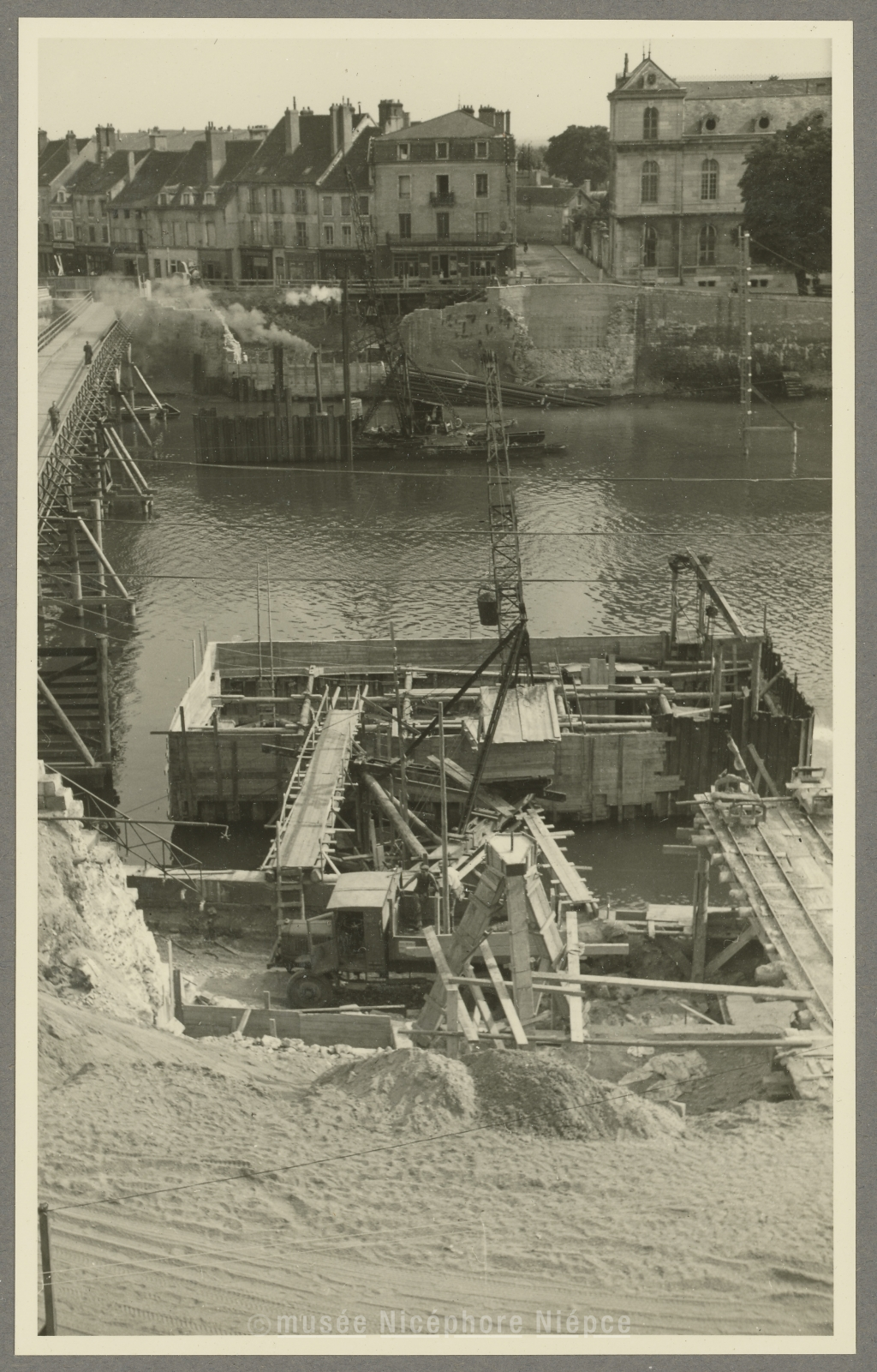 Pont Saint-Laurent : Travaux des culées et des piles 13 Septembre 1951