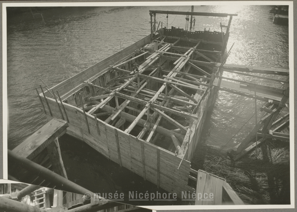 Travaux du pont Saint-Laurent : Coffrage de la pile rive droite 29 Septembre 1951