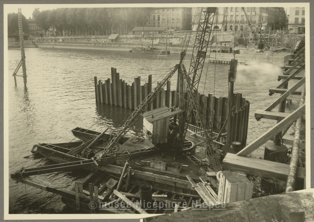 Travaux du pont Saint-Laurent : Coffrage de la pile rive gauche 29 Septembre 1951