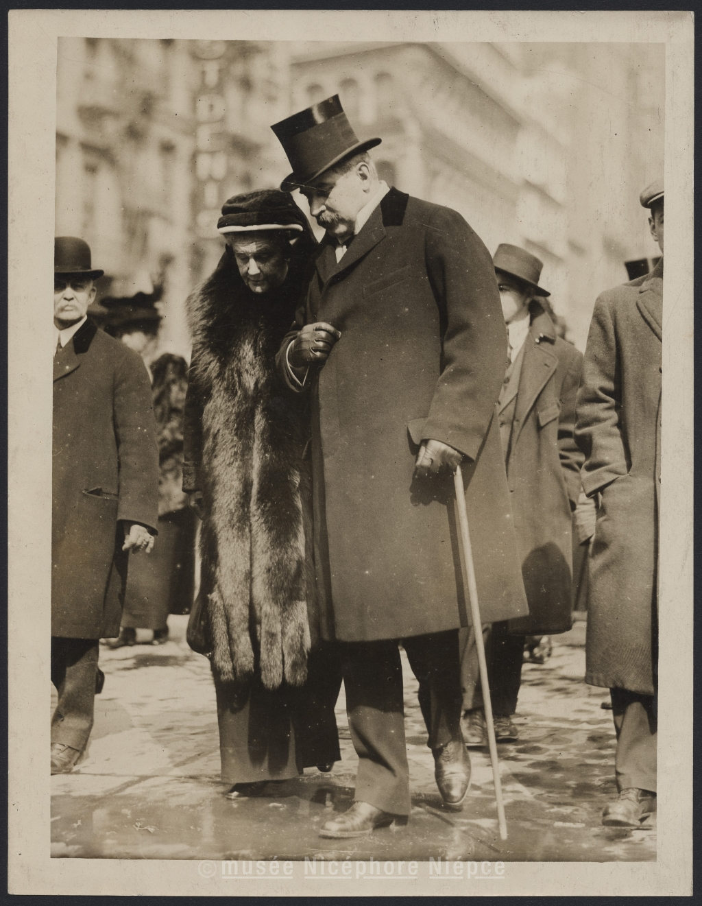 J.P. Morgan and his mother taken at the funeral of John L. Cadwalder, the famous lawyer at Grace Church, today