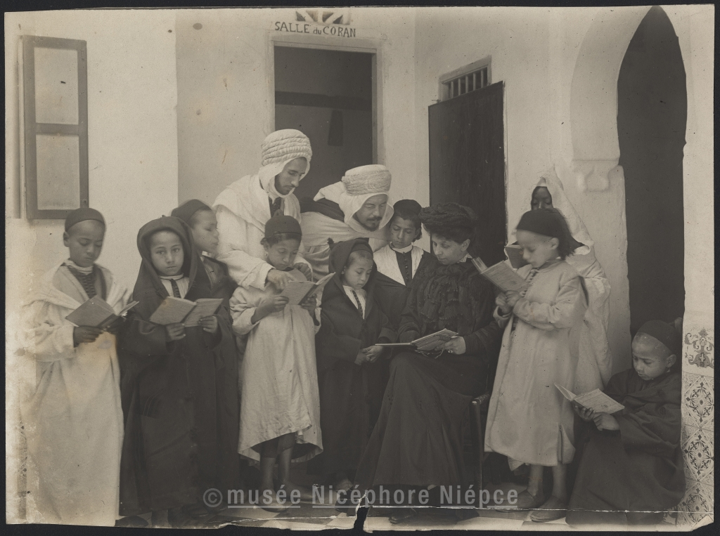 scène - enfant - assis - femme - colonialisme - Afrique du Nord - européen - enseignement - Anonyme - CHUSSEAU-FLAVIENS