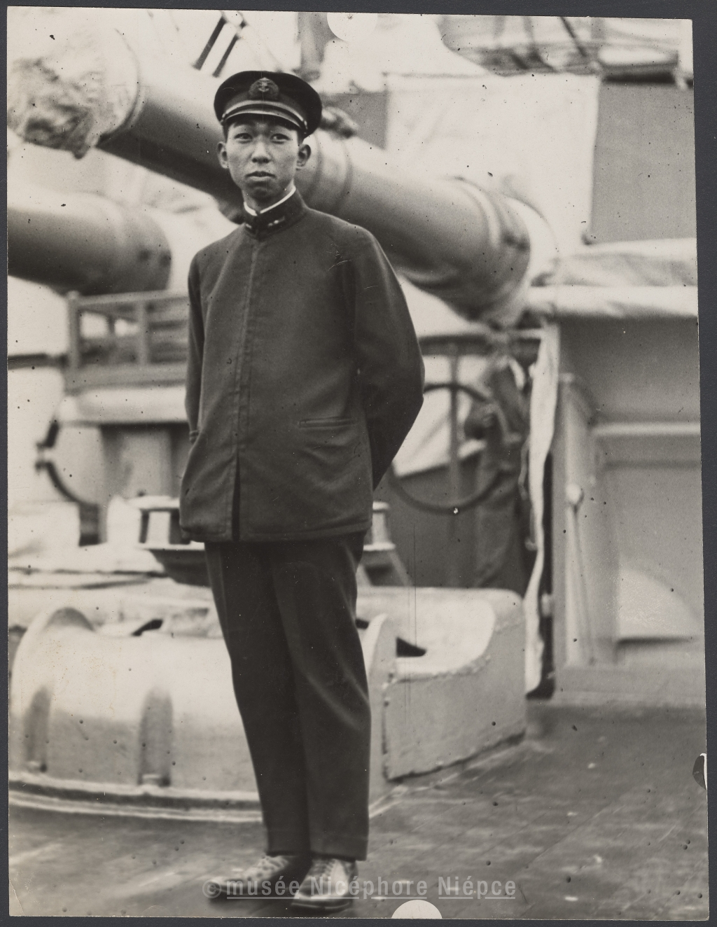 Prince Takamtsu frère de l'empereur du / Japon, dans les eaux Australiennes. / Le prince est aussi prince heritier, et lieutenant / dans la marine Japonaise