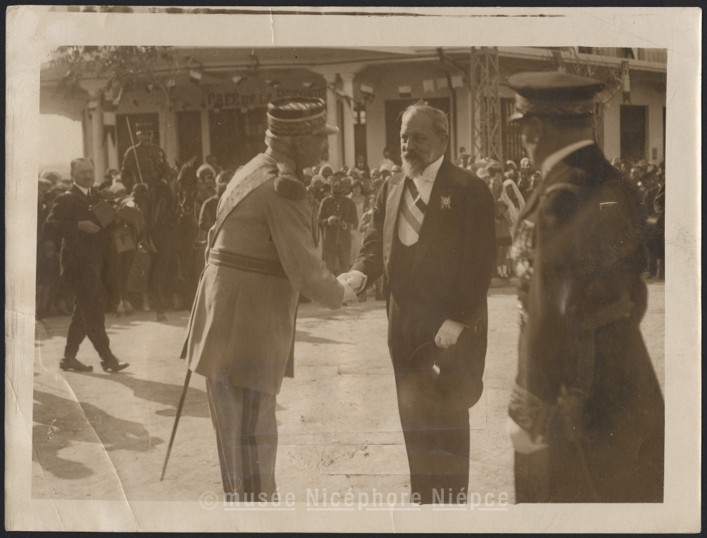 M. Steeg résident général converse avec les officiers à Rabat