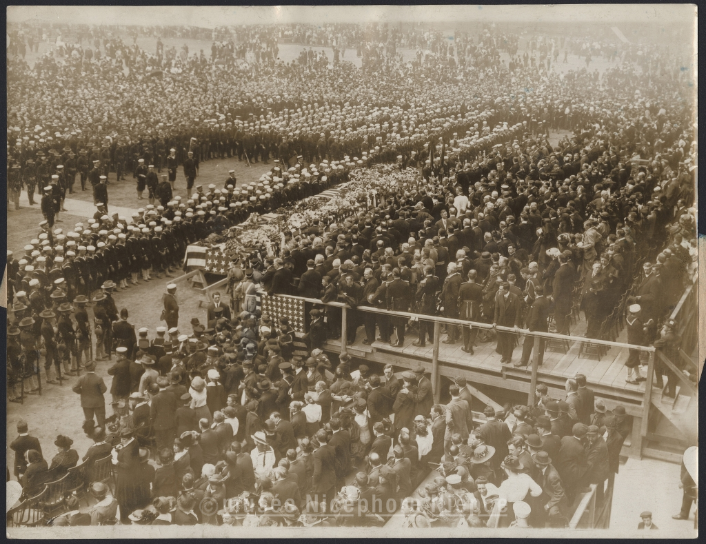 impresvice scene during the solemn funeral services held over the bodies of the dead sailors and marines [...]