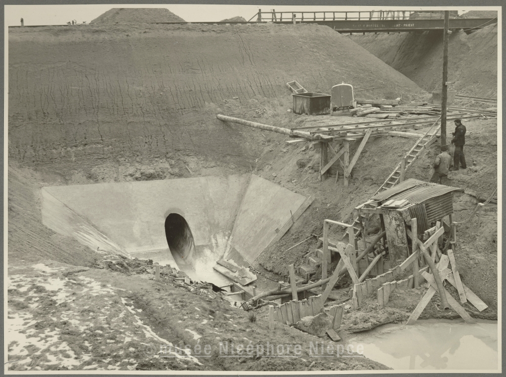 Travaux du Canal du Centre dans la nouvelle zône industrielle (Passage sous la voie ferrée Chalon-Dole) fin Janvier 1953