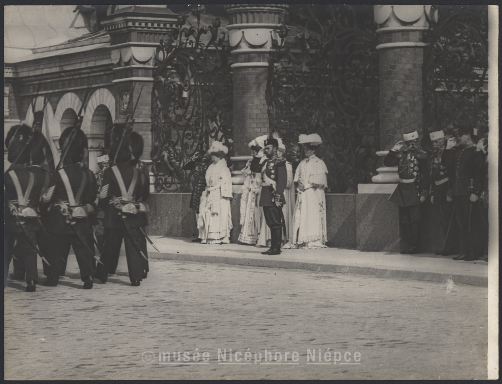 scène - de dos - soldat - revue - manifestation militaire - Fédération de Russie - Nicolas II de Russie - impératrice de Russie - CHUSSEAU-FLAVIENS