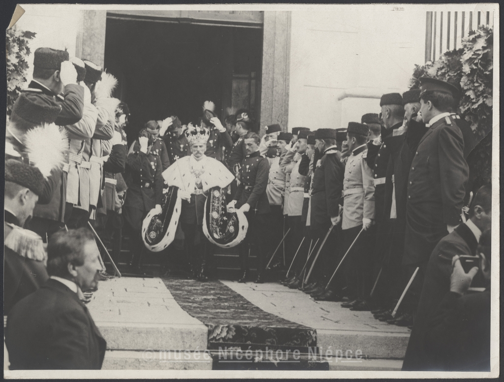 Le Roi sort de la Cathédrale / Pierre Ier de Serbie lors de / son couronnement à Belgrade