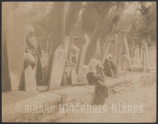 vue d'architecture - femme - costume traditionnel - cimetière - tombe - figures - Turc - Turquie - CHUSSEAU-FLAVIENS - SEBAH et JOAILLIER