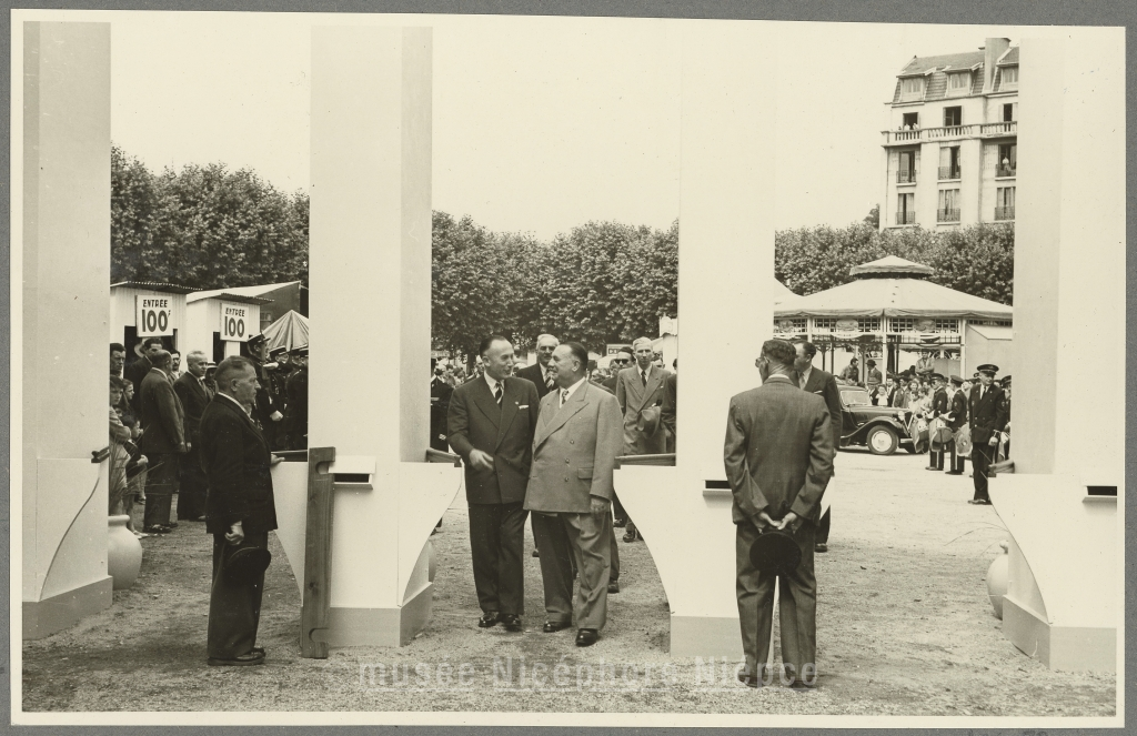 Inauguration de la XIXè Foire-Exposition par le Préfet Lambert, accompagné de Mr Nouelle, maire et de Mr Borgeot, Prt du Conseil Gl 21 Juin 1953
