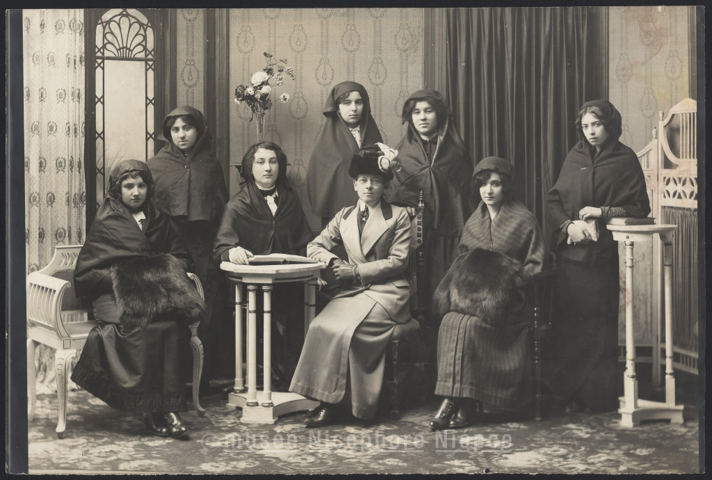 Un groupe de quelques filles turques, au / service de la Société ottomane des Téléphones de Constantinople,/ avec leur directrice Miss F. Minter