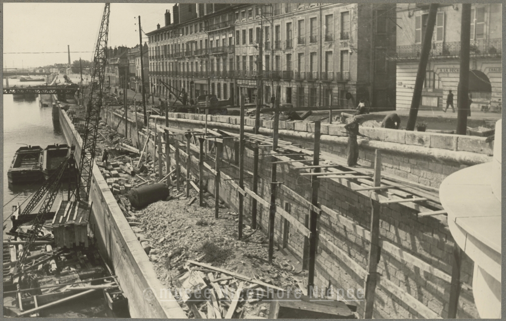 Travaux aux abords du pont Saint-Laurent, rive droite au Quai des Messageries 27 Août 1953