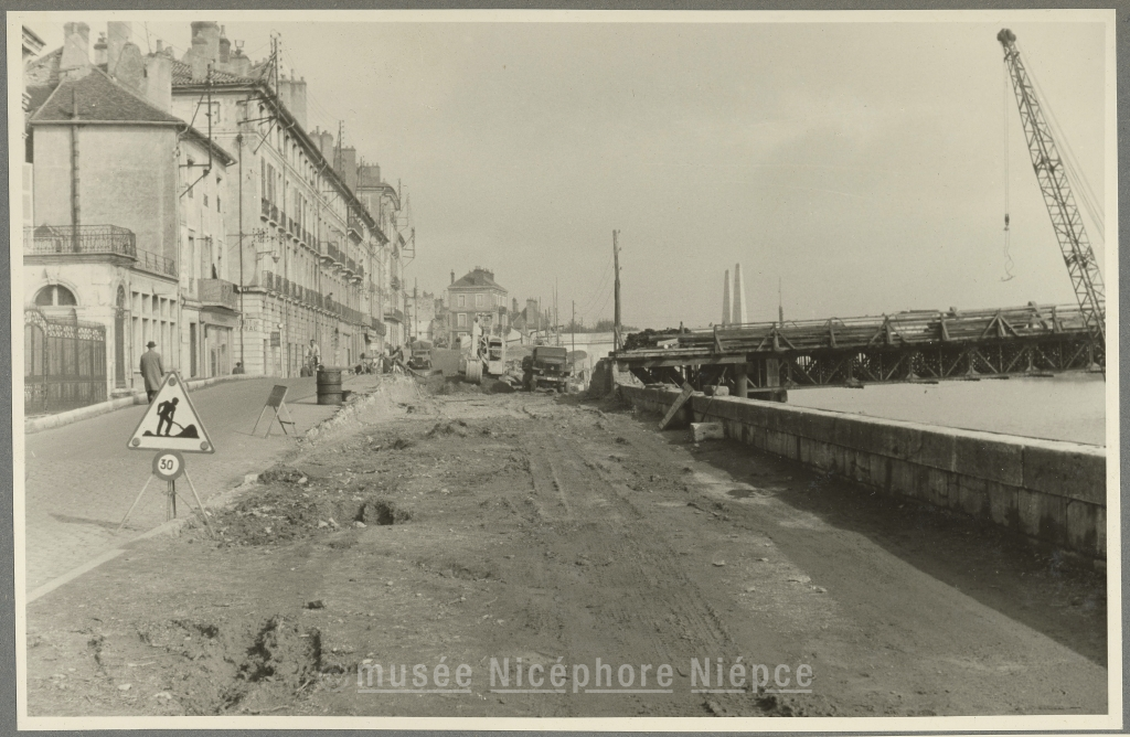 Les travaux de démolition du pont provisoire de Saint-Laurent, et de remise en état du Quai des Messageries 16 Octobre 1953