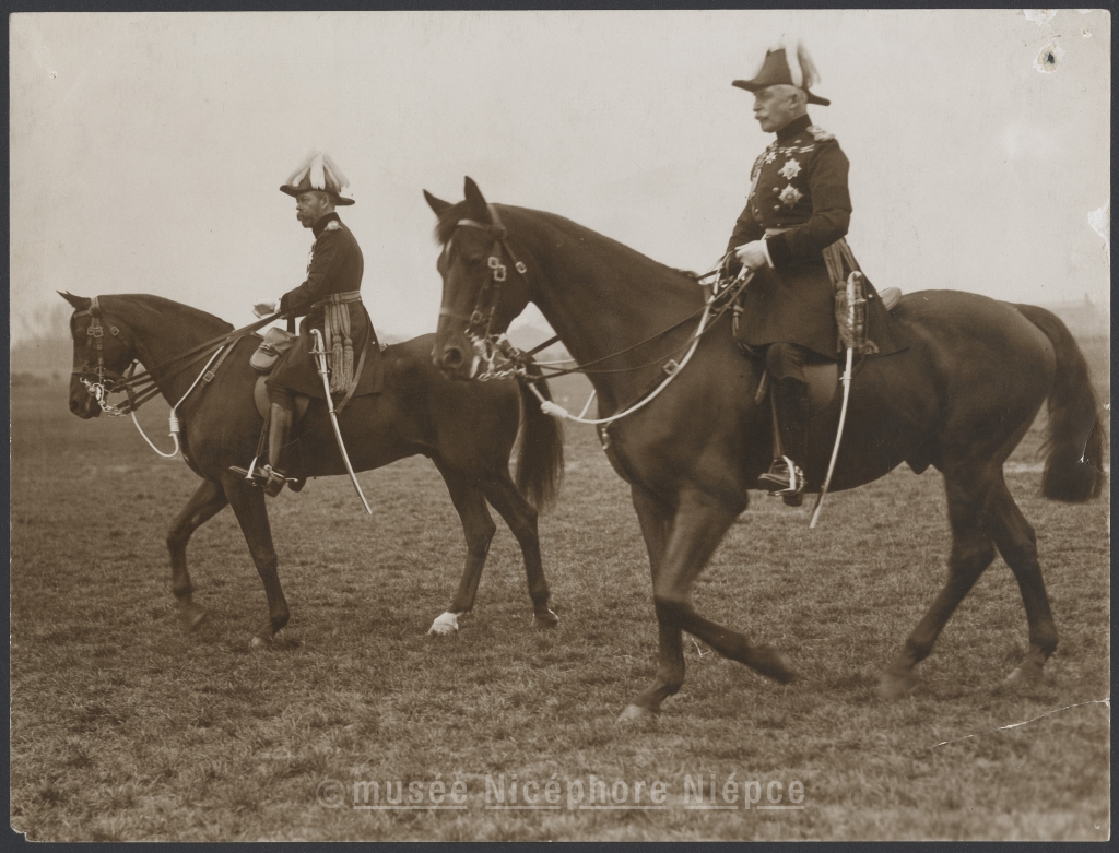 La visite du Roi George V à Woolwich. Le roi passe une grande revue en compagnie du duc de Connaugt