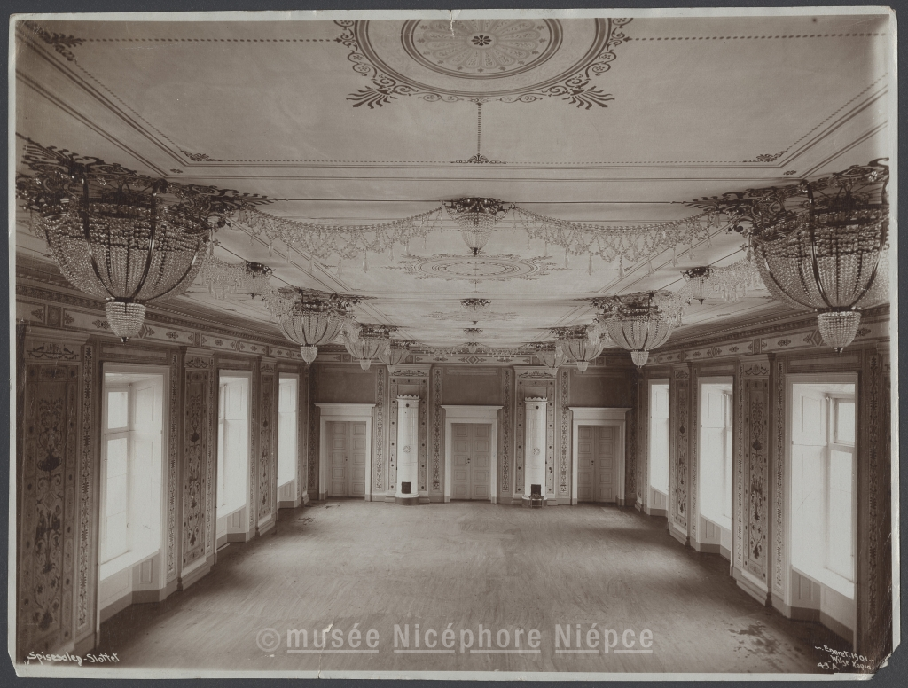 Intérieur du château Royal de Christiania / qu'occupera le prince Charles / de Danemark, nouveau roi de Norvège / Le grand salon des dîners