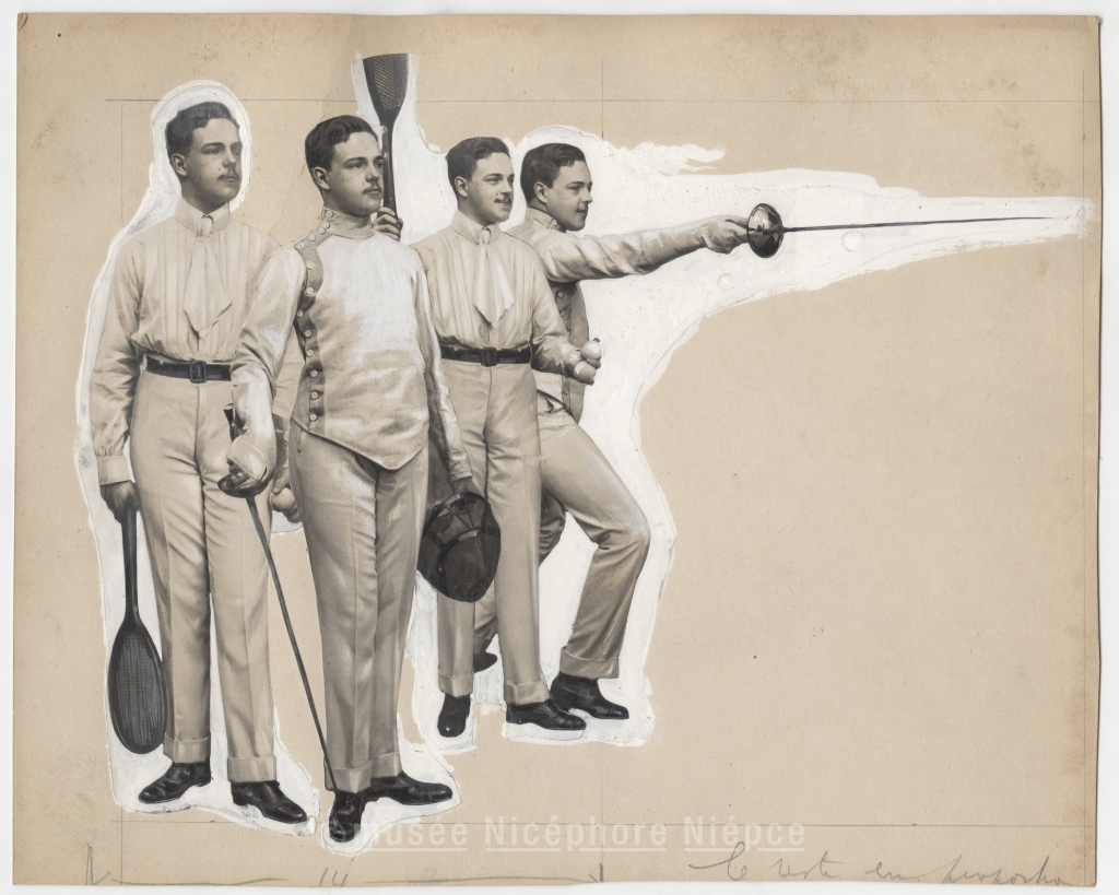 Photomontage représentant le roi Manuel II du Portugal dans diverses activités sportives