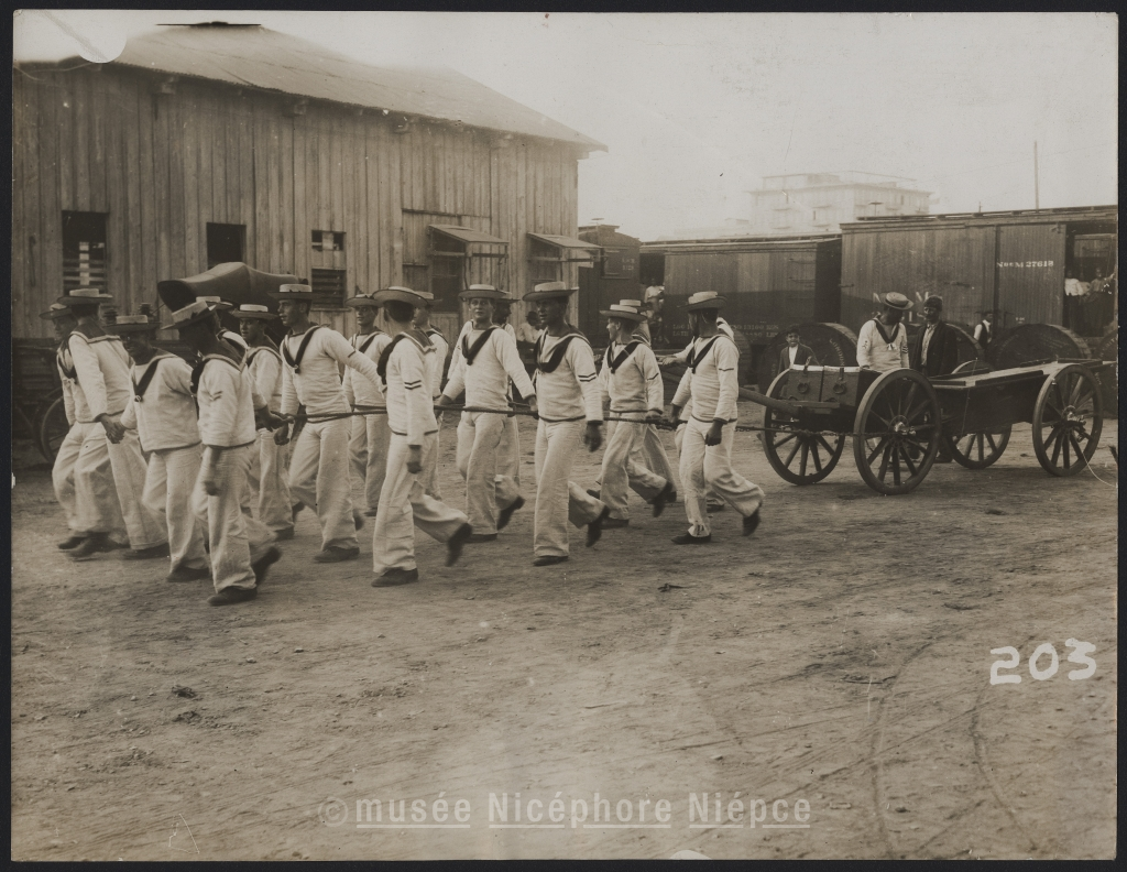 Marinos ingleses en Tampico, preparandose para defender / los pozos petroliferos de su connacionales