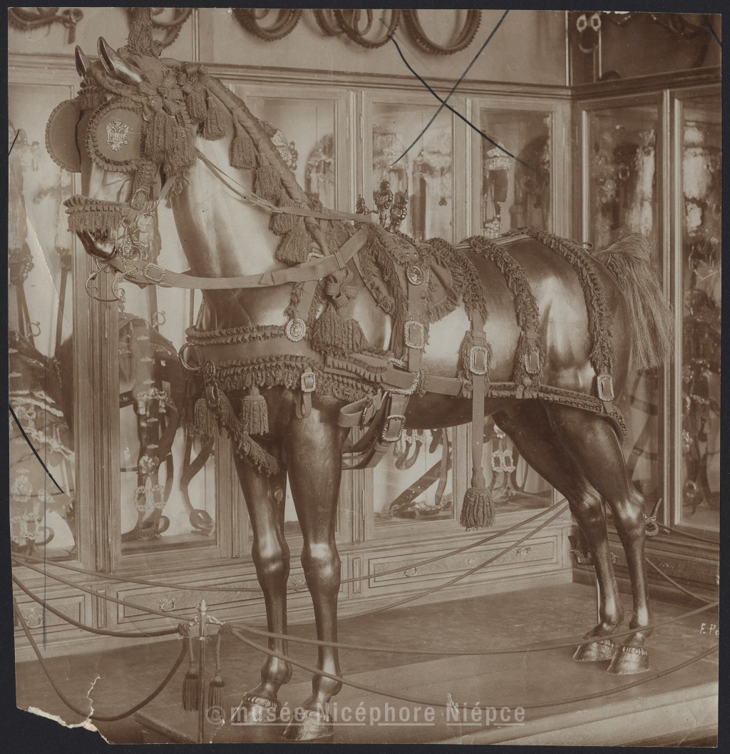 Sculpture représentant un cheval harnaché exposée à la Cour d'Autriche