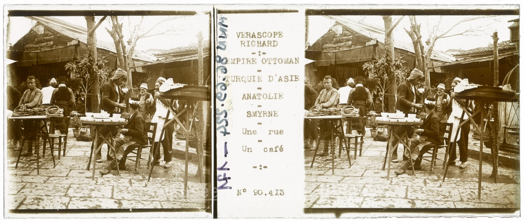 EMPIRE OTTOMAN TURQUIE D'ASIE ANATOLIE SMYRNE Une rue Un café