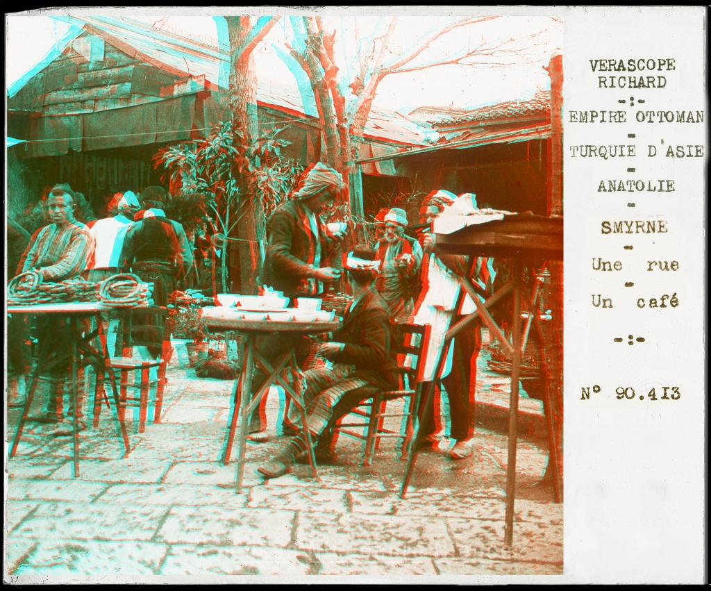 EMPIRE OTTOMAN TURQUIE D'ASIE ANATOLIE SMYRNE Une rue Un café