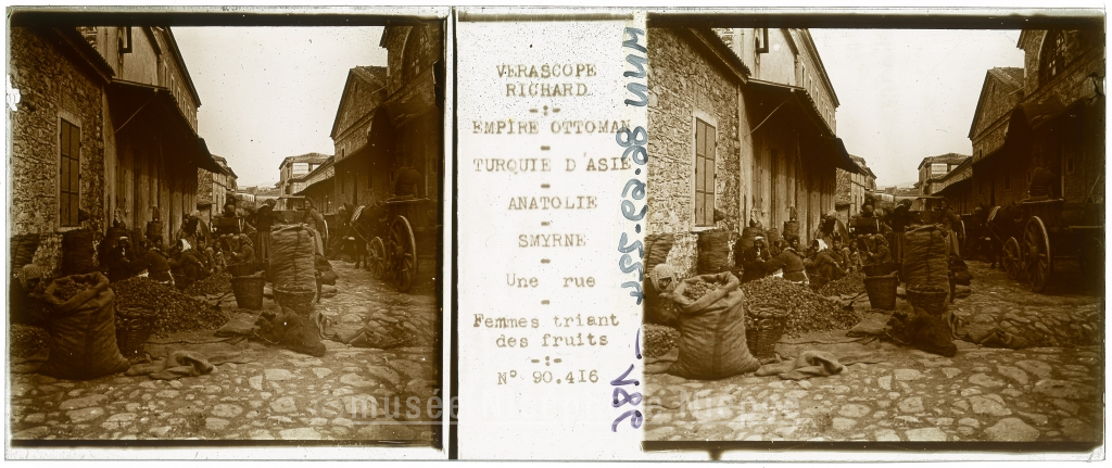 EMPIRE OTTOMAN TURQUIE D'ASIE ANATOLIE SMYRNE Une rue Femmes triant des fruits