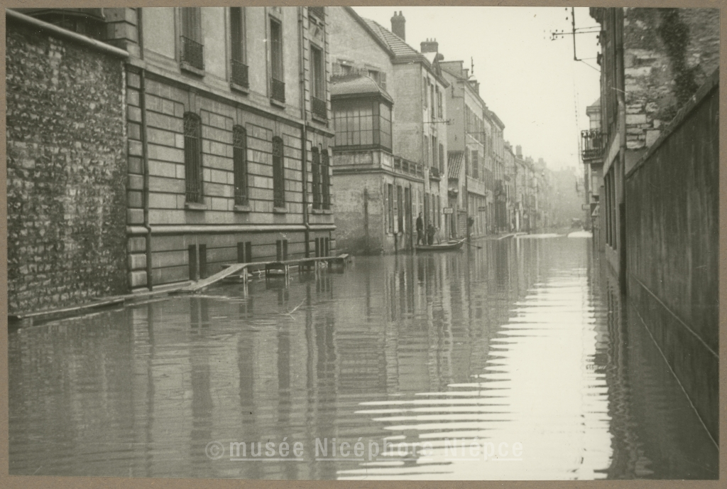 Inondations de Janvier 1955 Rue de Thiard, au carrefour de la rue de Gloriette