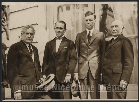 Paris, 26.5.27. Visite de l'aviateur Lindbergh / au Maréchal Foch. / A gauche : M. Myron Herrick et le Maréchal / Foch à droite de M. Lindbergh