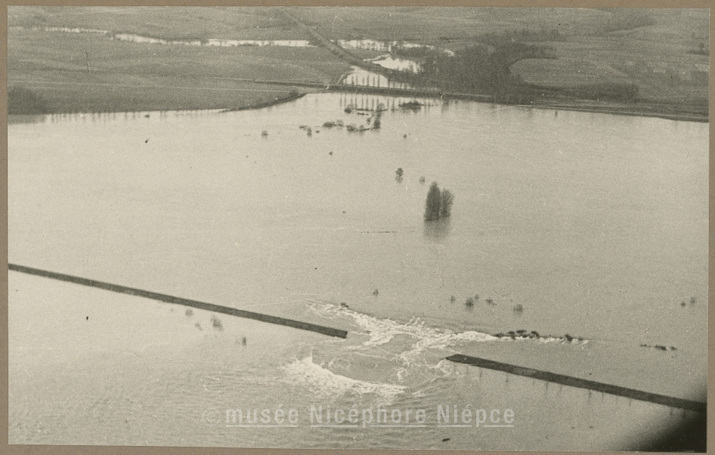 Inondations de Janvier 1955 La rupture de la digue à Verjux, ce qui préserva Chalon de plus graves inondations