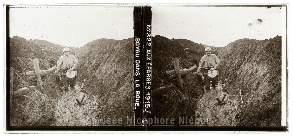 AUX ÉPARGES 1915 / BOYAU DANS LA BOUE.