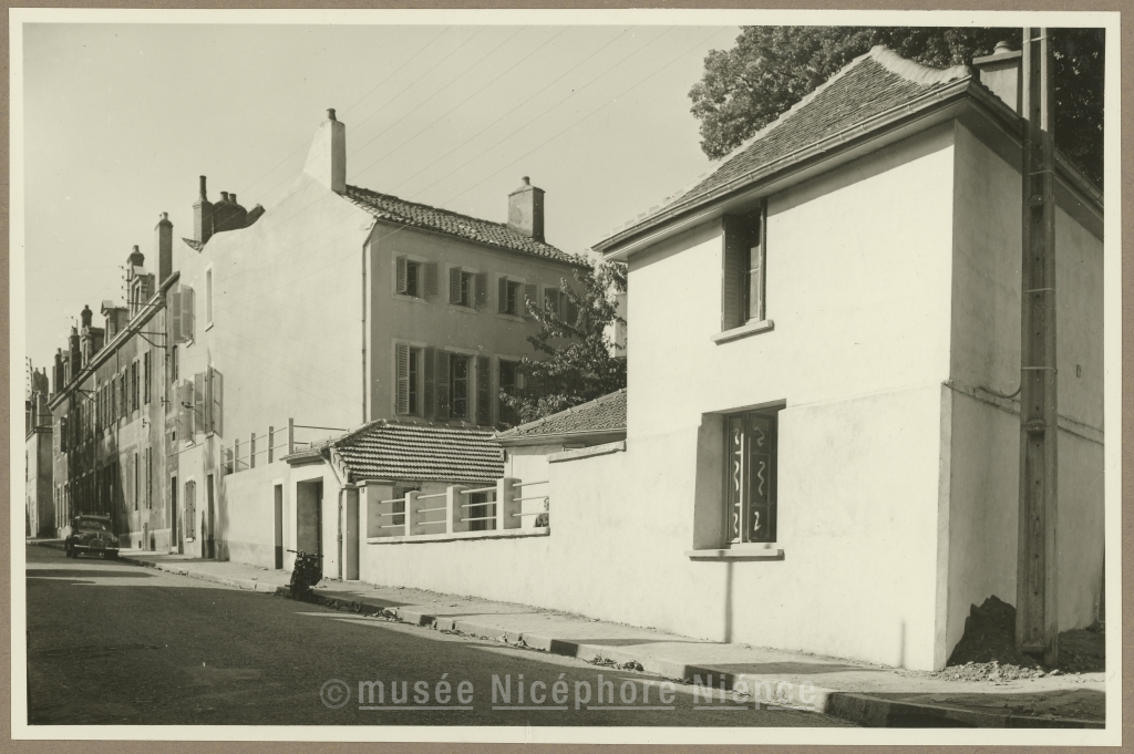 Rue Doneau, en arrière de cet immeuble restauré faisant l'angle du Rempart Saint-Vincent, l'immeuble communal récemment acheté par la ville pour abriter au 1er étage les Sociétés Savantes. Sté d'Histoire et d'Archéologie et Sté des Sciences Naturelles, et au rez de chaussée, avec sortie sur le Rempart, les services de la Bourse du Travail 24 Octobre 1955
