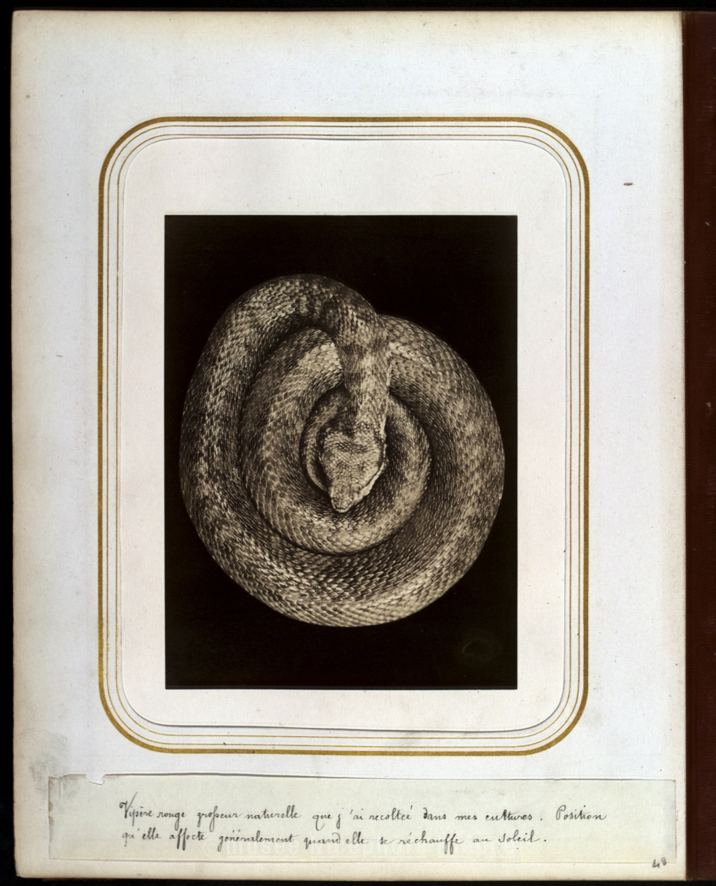 Vipère rouge grosseur nature naturelle que j'ai recoltée dans mes cultures. Position qu'elle affecte généralement quand elle se réchauffe au soleil