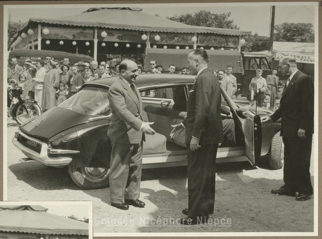 Le 24 Juin 1956, inauguration de la XXIIème Foire-Exposition, par M. Billières, Ministre de l'Education Nationale, accompagné de M. Vacher-Desvernais, délégué général du Centre National du Commerce extérieur au Ministère des Affaires Etrangères, et de M. le Préfet Chopin