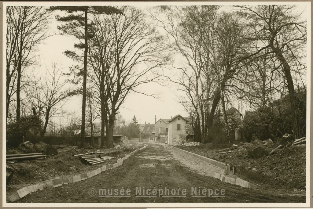 Percement de la nouvelle rue "Ambroise Paré" à travers la propriété Brill, et reliant la rue Philibert Guide à la rue Villebois-Mareuil Vue prise en direction du Nord 17 Janvier 1957