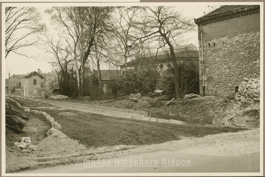 Percement de la nouvelle rue "Ambroise Paré" à travers la propriété Brill, et reliant la rue Philibert Guide à la rue Villebois-Mareuil Vue prise en direction du Nord 17 Janvier 1957