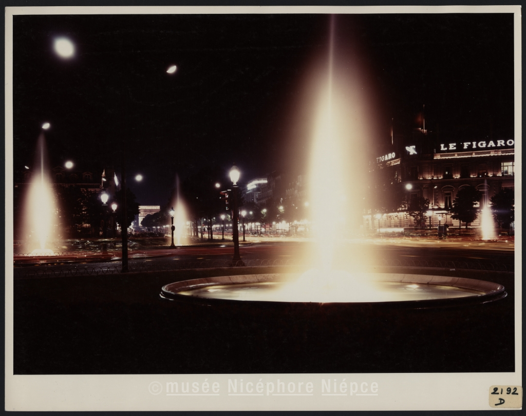 vue d'architecture - effet de lumière - avenue - nuit - jet d'eau - Paris - SARTONY
