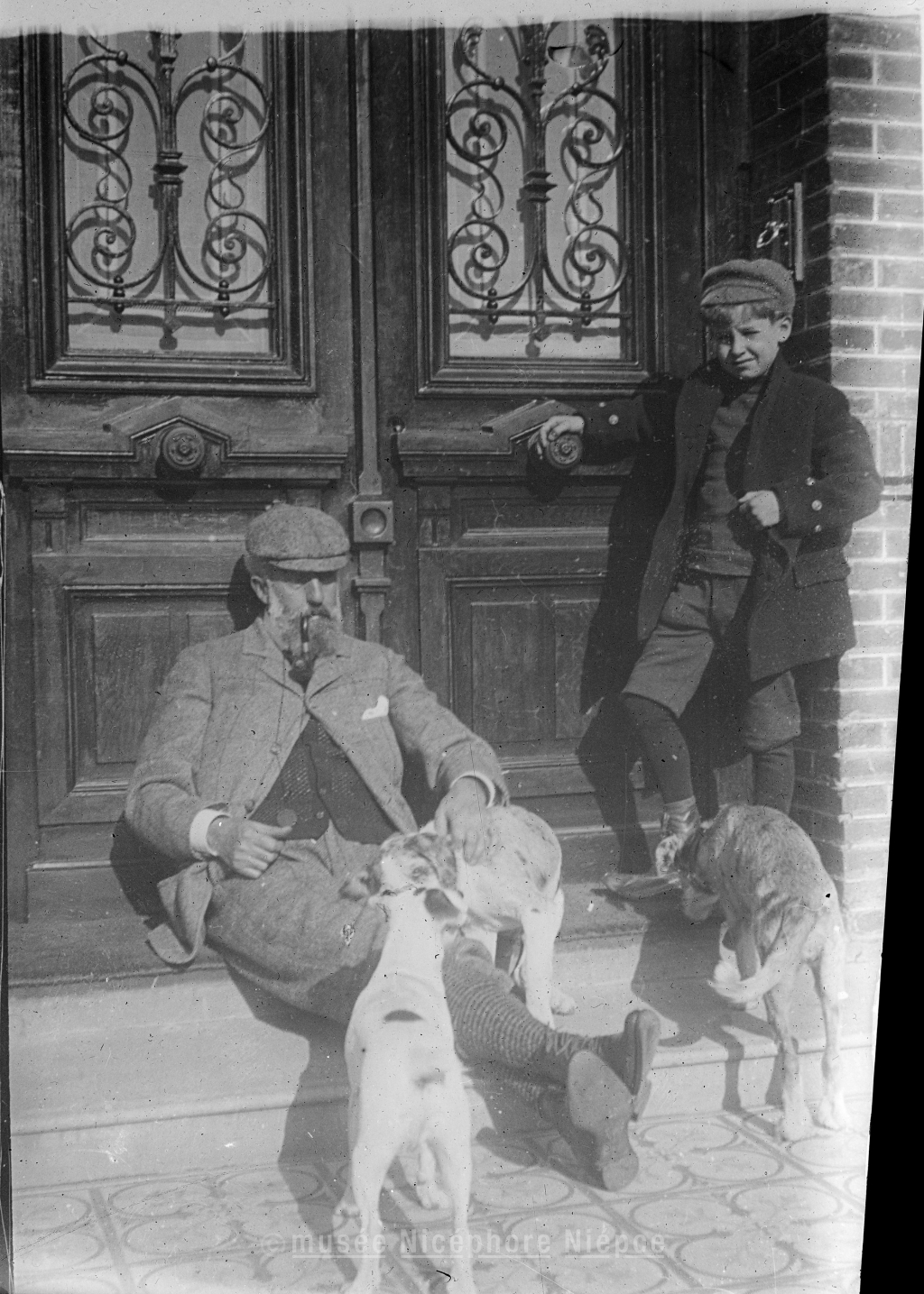 Robert DEMACHY et Bob (ou Jack) entourés de leurs chiens