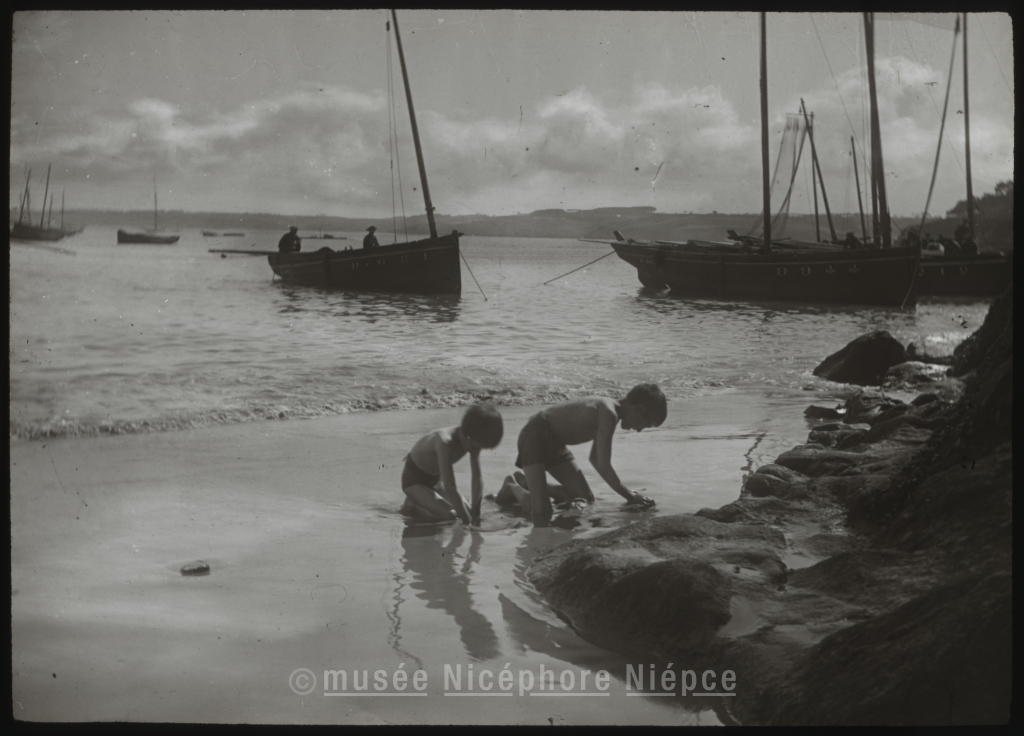 Deux jeunes garçons jouant sur la plage de Douarnenez (?)