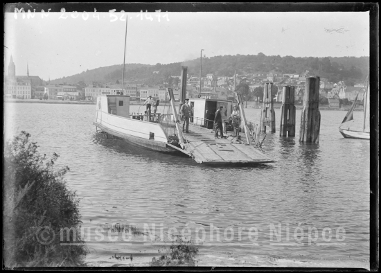 L'arrivée du bac pour Caudebec (l église Notre-Dame dans le fond)