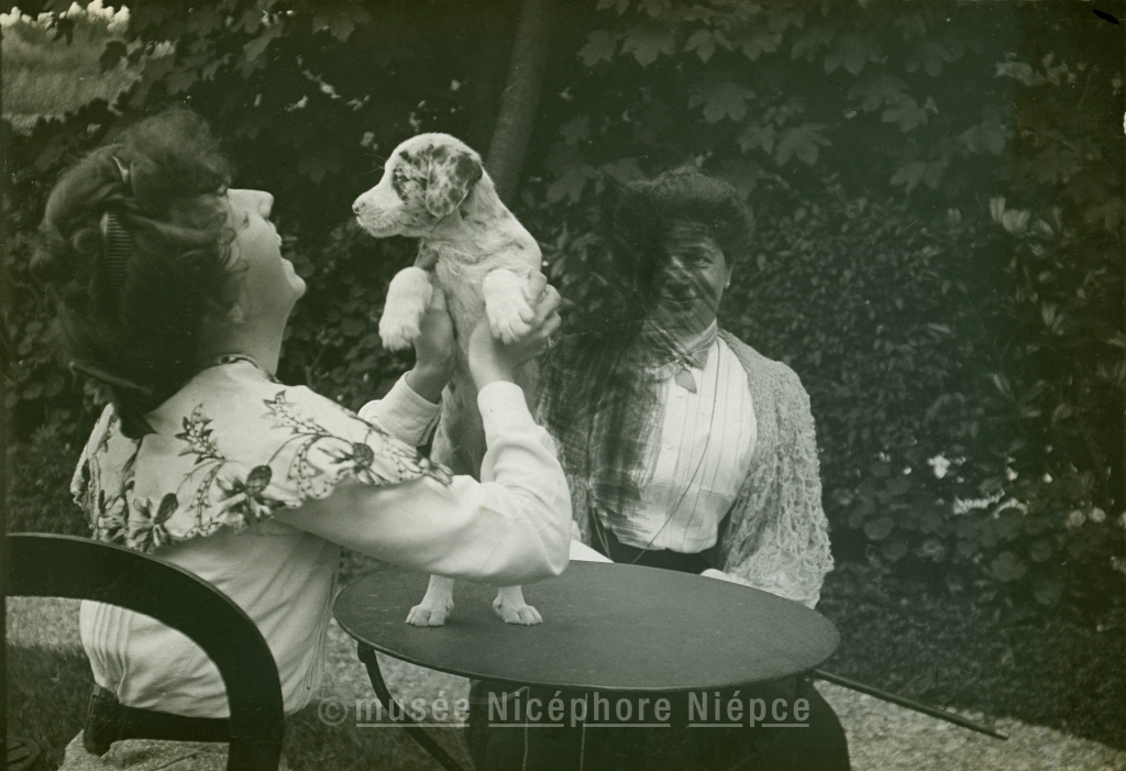 Femme (Mme Demachy ?) tenant un chiot dans ses bras