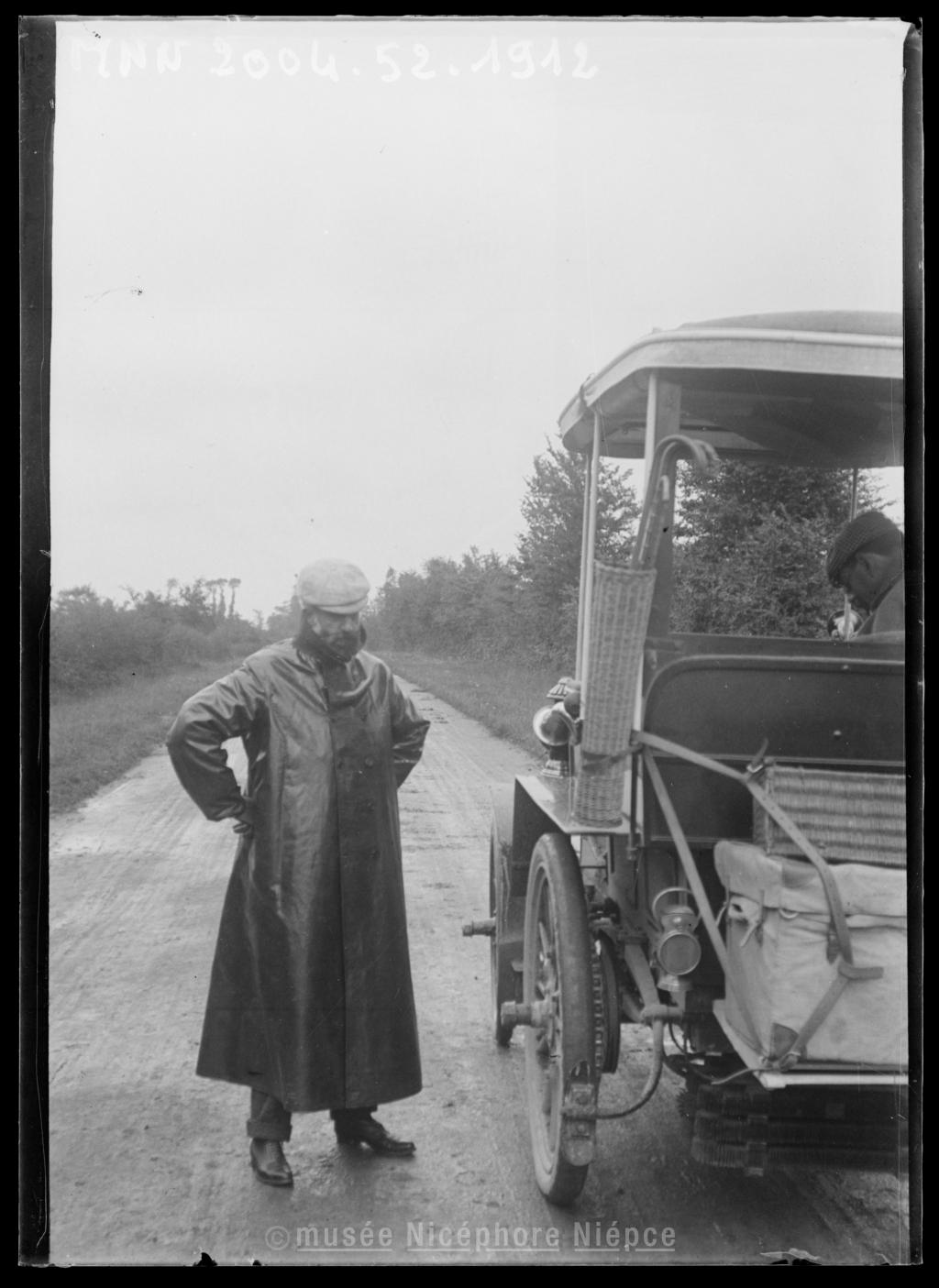 Robert DEMACHY devant son automobile sur une route de campagne
