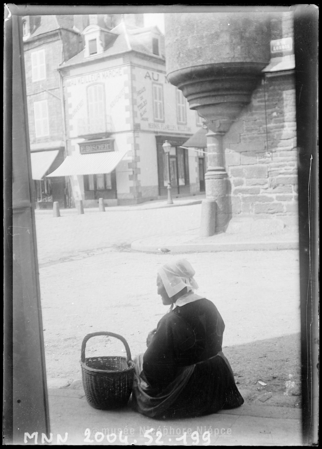 Bretonne de dos, rue Lorois, en face de la tourelle dune maison Renaissance