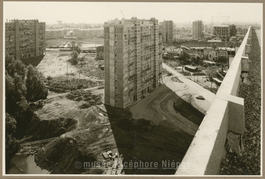 Quartier de l'Aubépin en cours d'aménagement Immeubles B12.08, B12.10 et B12.11 immeuble B12.06 Vue prise de la plateforme du B12.05 19 septembre 1958